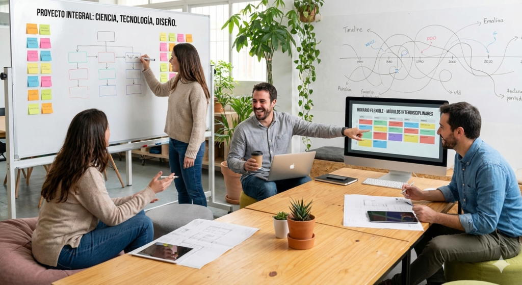 1. Deja de ver tu programaciones como un listado de módulos aislados. La acción más potente para ganar flexibilidad es dejar de tratar los módulos como compartimentos estancos. Según el artículo 10.2 del Real Decreto 659/2023, el módulo profesional no tiene por qué mantenerse como una unidad independiente en la programación. Rediseña tus clases por proyectos intermodulares en los que el alumnado resuelva problemas reales activando su curiosidad y creatividad, teniendo en cuenta la interdisciplinariedad de los módulos que componen el ciclo formativo.